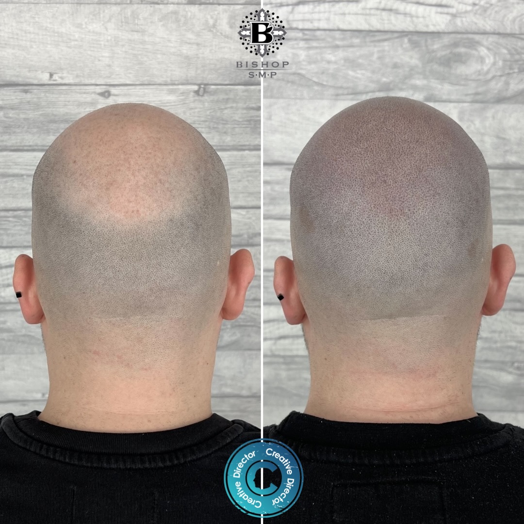 Creative Scalps excels in delivering transformative results with scalp micropigmentation (SMP), not only for bald heads but also for individuals dealing with thinning hair. Our dedicated gallery showcases remarkable before and after outcomes that specifically address the concerns of those experiencing hair thinning. Our skilled SMP specialists, Marc and his team, are renowned for their expertise and have successfully assisted clients in achieving fuller and natural-looking hair through SMP. By choosing Creative Scalps for SMP, clients witness a seamless blend of artistry and precision, restoring confidence and vitality to their appearance.